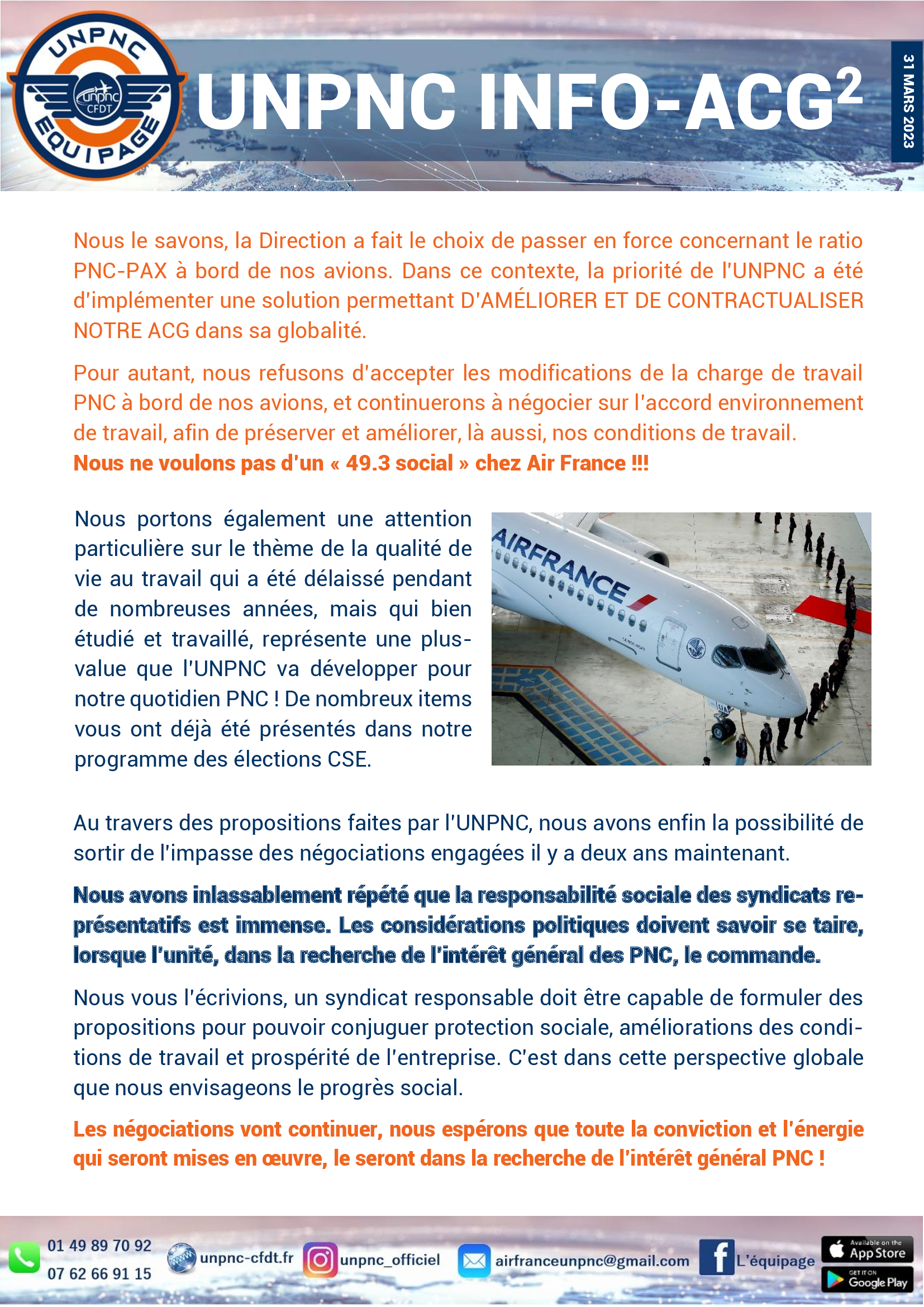 UNPNC INFO-ACG2 Auteur/autrice de la publication :La rédaction Publication publiée :avril 1, 2023 Post category:Actualités Air France TELECHARGER NOTRE TRACT Read more articles Article précédentUNPNC INFO-ACG 1 Article suivantUNPNC INFO – ACG 3 Vous devriez également aimer Info CE: ouverture de la “zone repas express” décembre 3, 2018 ? AF NEWS DE LA TEAM UNPNC DU 13 AVRIL 2020❗ avril 13, 2020 LE CHSCT A DEPOSE UN DGI août 23, 2016