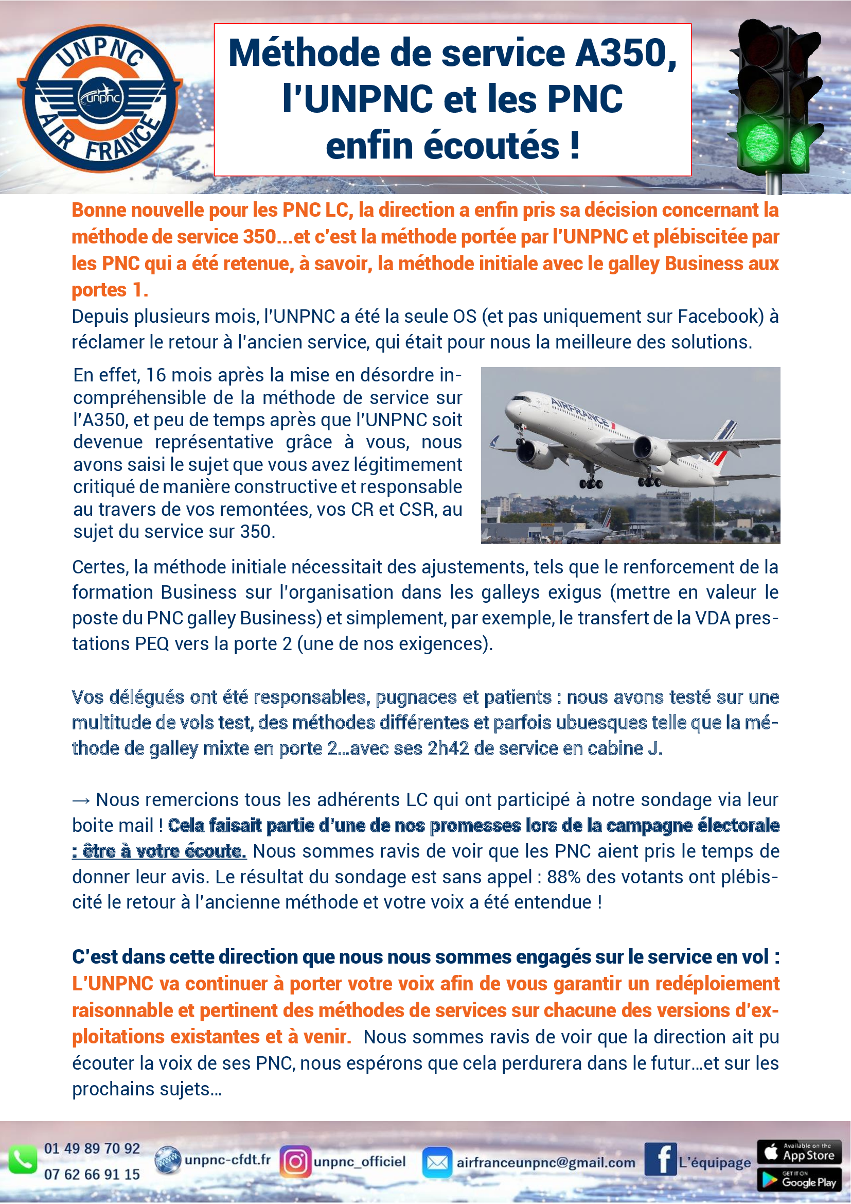 Méthode de service A350, l’UNPNC et les PNC enfin écoutés ! Auteur/autrice de la publication :La rédaction Publication publiée :septembre 5, 2023 Post category:Actualités Air France Read more articles Article précédentLES VALEURS PNC … PAS POUR TOUTES LES OS ! Article suivantCONSULTATION ADHERENTS UNPNC PROTOCOLE D’EXPERIMENTATION PBS Vous devriez également aimer Took-Took – partage de taxi | vtc | covoiturage juin 24, 2019 CONSULTATION ADHERENTS UNPNC PROTOCOLE D’EXPERIMENTATION PBS septembre 6, 2023 ELECTIONS ARSA janvier 14, 2022