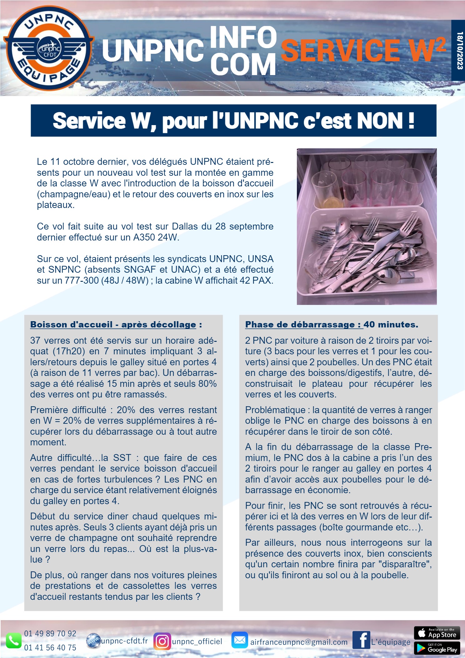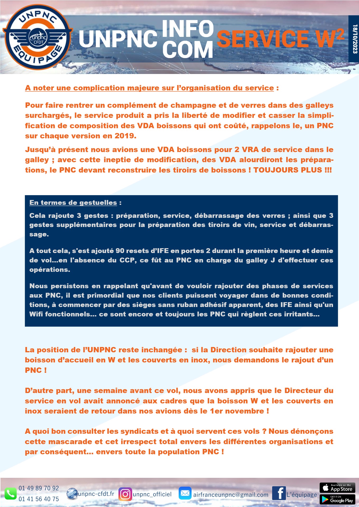 Service W, pour l’UNPNC c’est NON ! Auteur/autrice de la publication :La rédaction Publication publiée :octobre 19, 2023 Post category:Actualités Air France TELECHARGEZ NOTRE TRACT Read more articles Article précédentDDA DECEMBRE MAJORATION ACTIVITE NOEL Article suivantL’UNPNC a obtenu l’ouverture prochaine d’une sélection interne PS/PNC Vous devriez également aimer ℹ️ Pôle Multi-Services au niveau du Forum de la cité PN mars 16, 2021 📌MISE À JOUR: ADAPTATION DU PROGRAMME DE VOLS SUITE AUX NOUVELLES MESURES SANITAIRES❗️ novembre 5, 2020 CAMPAGNE TEMPS ALTERNE 2020 janvier 21, 2020