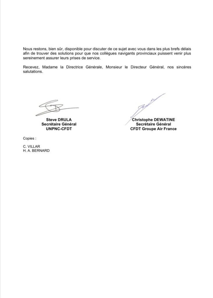 A l’aube d’un été crucial avec un programme de vol qui se veut ambitieux et qui va nécessiter l’implication forte de tous les navigants d’Air France, dont plus de la moitié vit en province, il nous semble que cette situation nécessite toute la considération de la Direction …