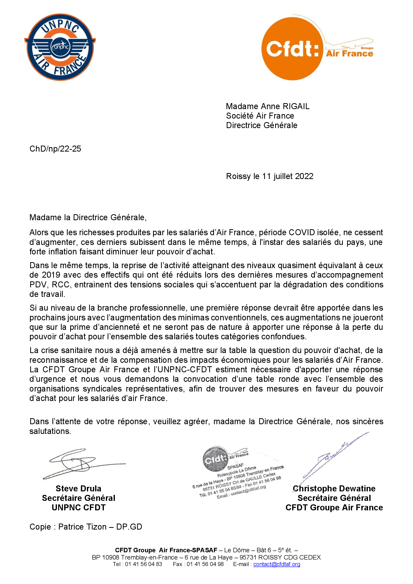Dans l’attente de l’ouverture des NAO 2023, l’UNPNC-CFDT demande à la Direction l’organisation d’une table ronde pour faire le point sur l’évolution du contexte économique et échanger sur des mesures en faveur du pouvoir d’achat et du pouvoir de vivre des salariés.